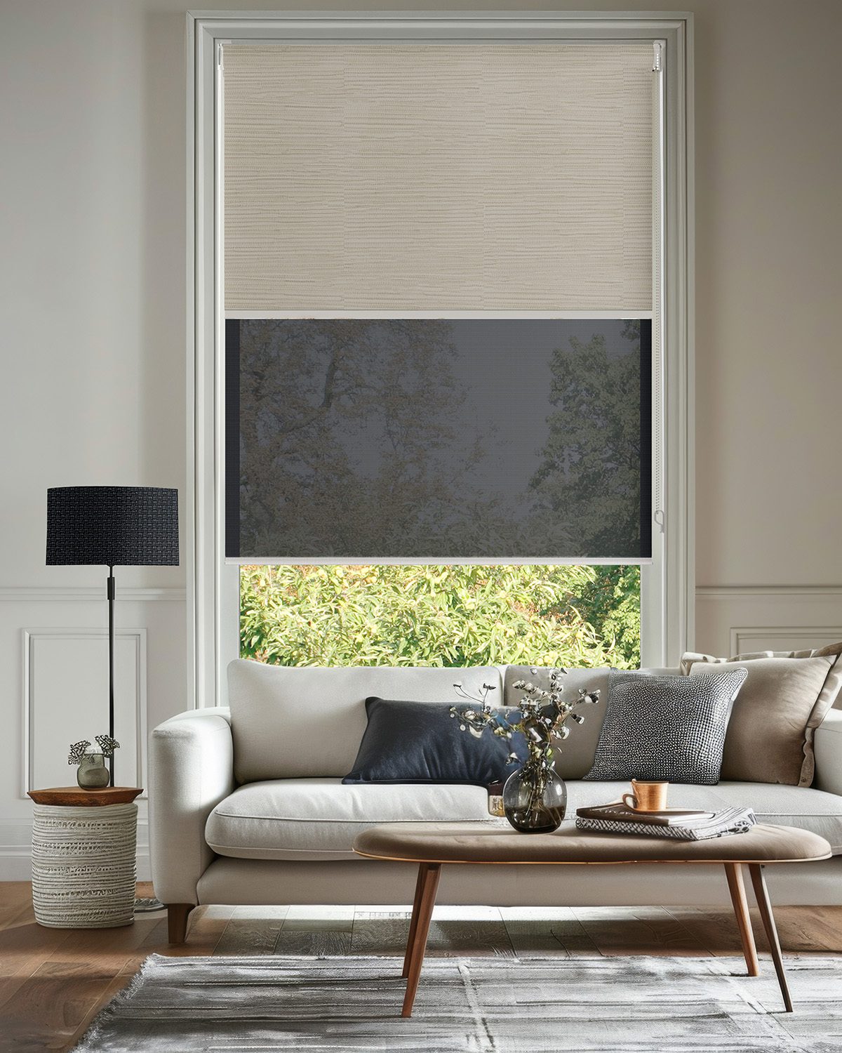 Our new Double Roller Bracket supports installation of both a Blockout Roller and Sunscreen Roller. This option offers great versatility throughout the day to night period, with the Sunscreen Rollers offering daytime privacy and glare control while the Blockout Rollers are ideal for full privacy, insulation and light control at night.